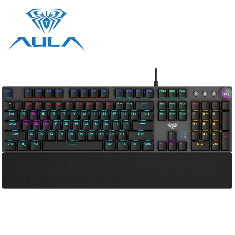 HOT Sale AULA Mechanical Keyboard Metal Panel RGB Backlight USB Wired for PC Laptop Computer Wrist Rest Game