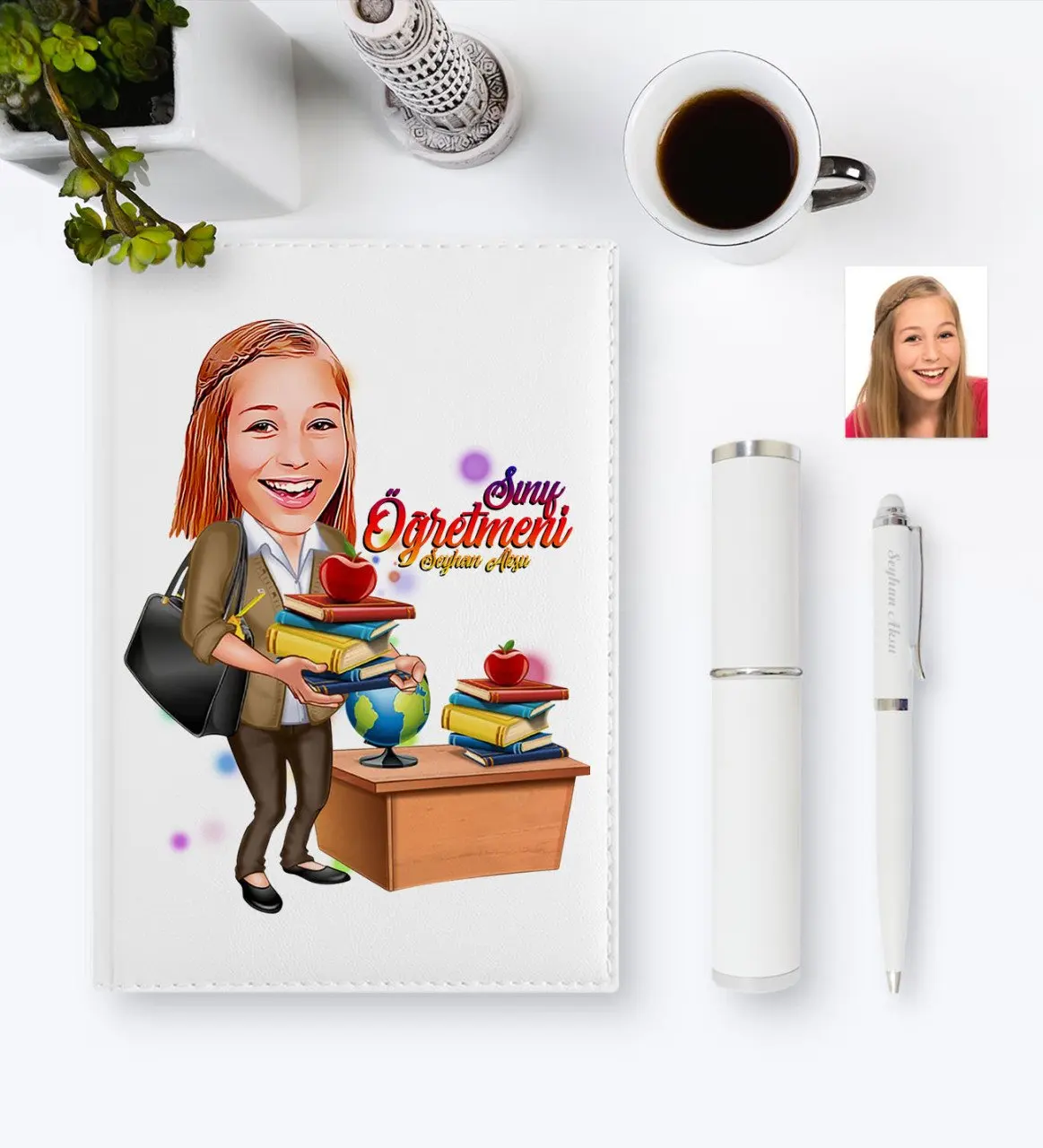 HOT SALE Personalized Women 'S Teacher Caricature of 2020 Leather Organizer & Pen Gift set-4