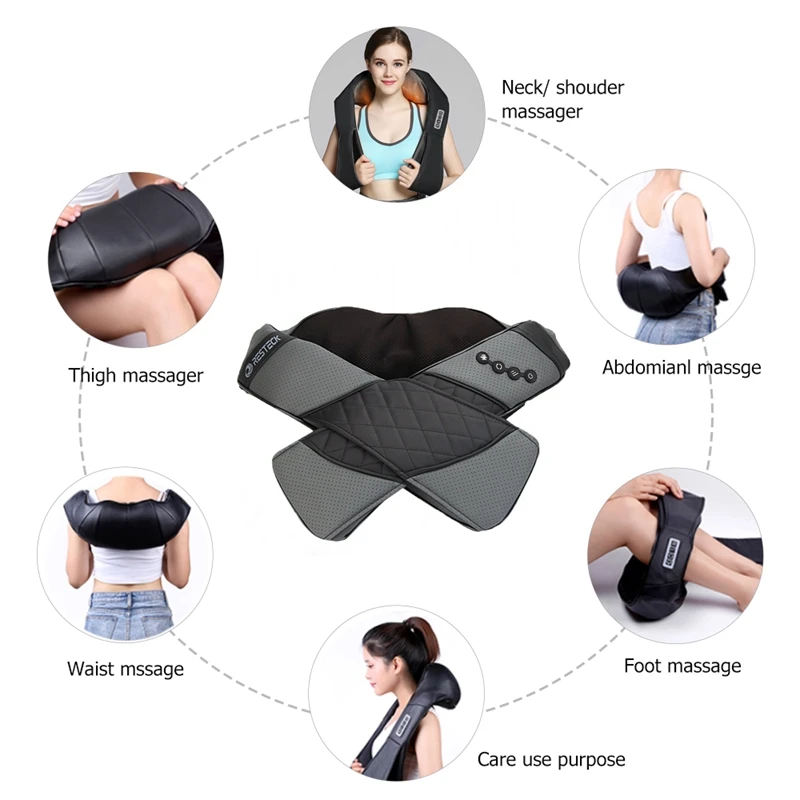 BEST QUALITY Neck Massager Infrared Heated 3D Kneading Pillow Electric Shiatsu Neck Shoulder Massage Relieve Mus