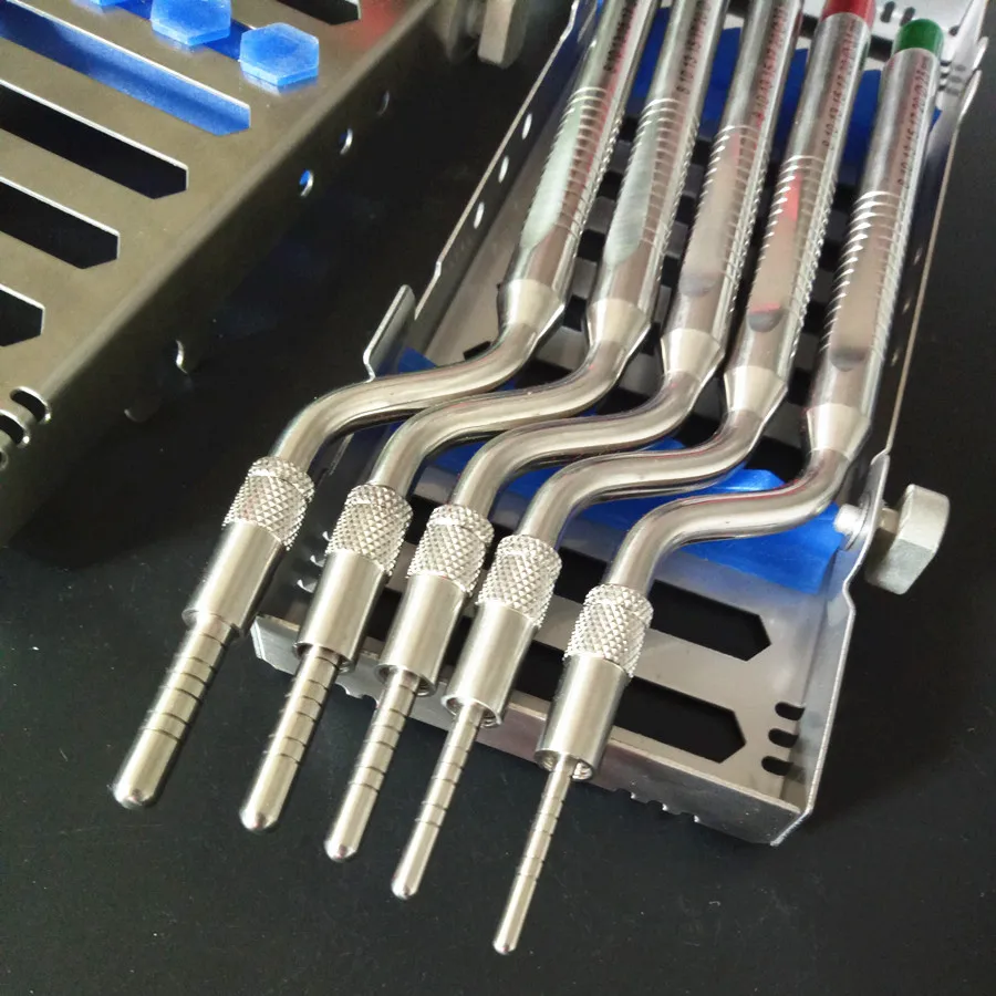 Hot Sale 5 Pcs Set Dental Implant Osteotome Instruments Sinus Lift Curved and Straight with Cassette Case (