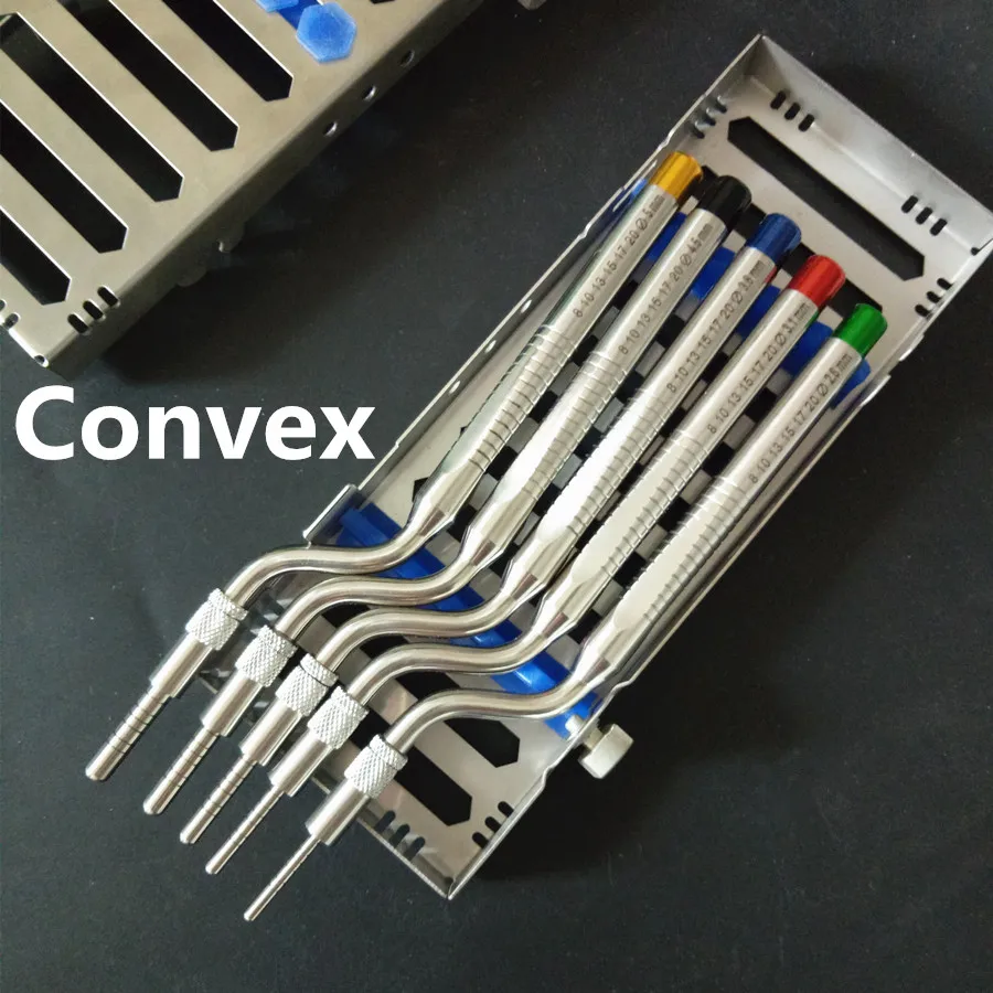 5 Pcs Set Dental Implant Osteotome Instruments Sinus Lift Curved and Straight with Cassette Case (