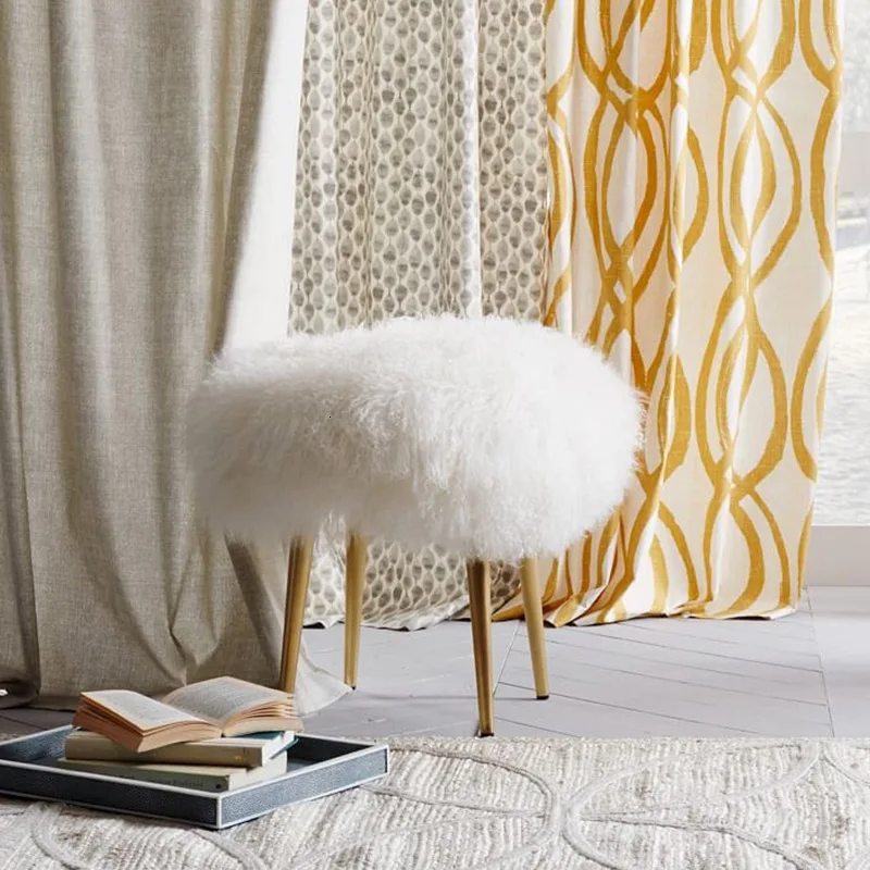 BEST Simple white beach wool stool stainless steel bedroom dressing stool makeup stool sofa stool shoes