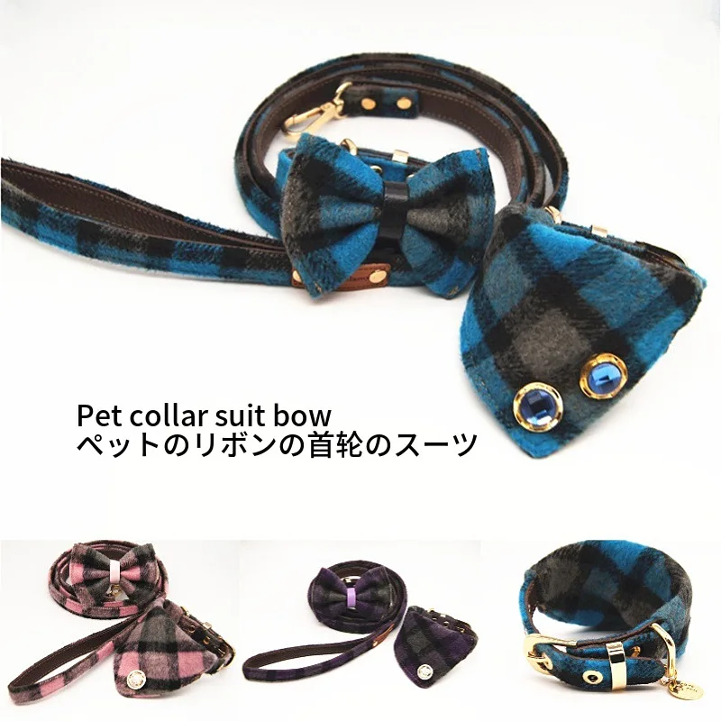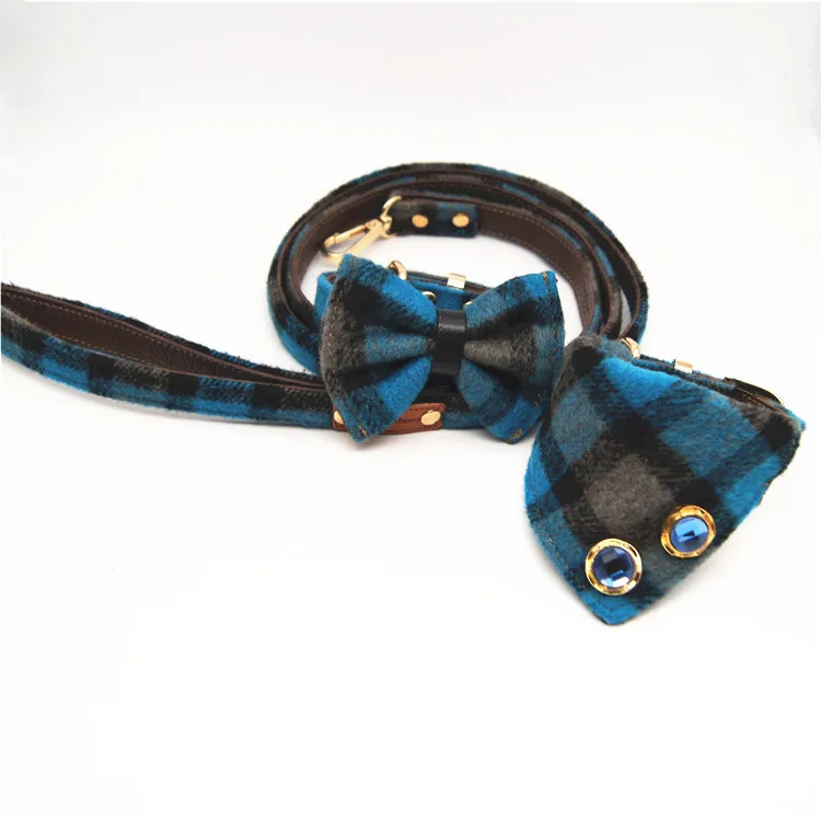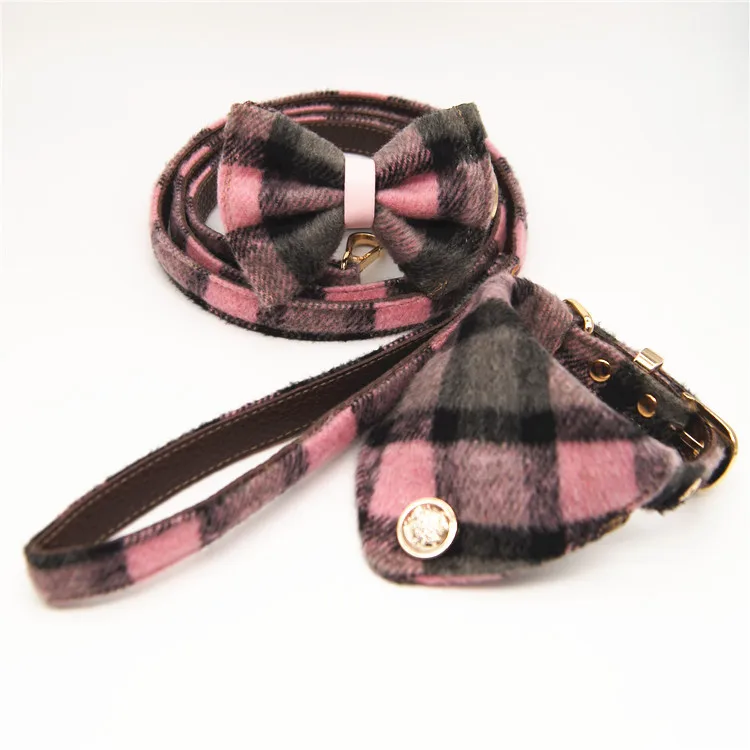 HIGH QUALITY Plaid Series Pet Collar Pet Traction Set Dogs And Cats Triangular Binder Pet Supplies