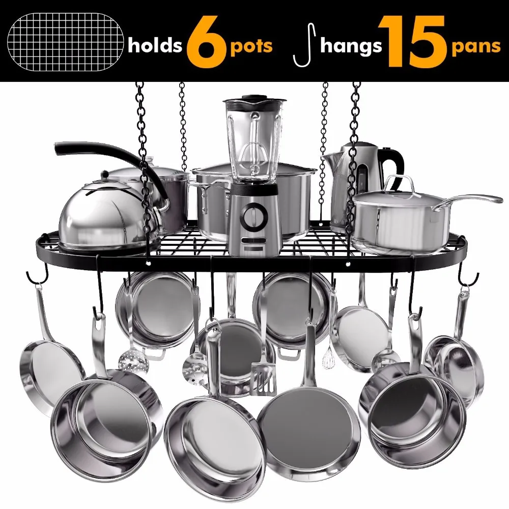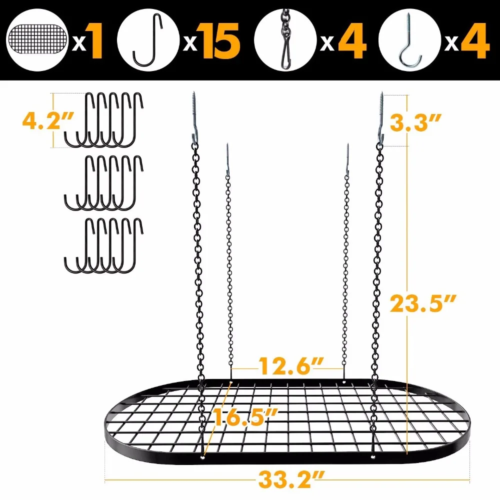 Hot Sale Pot Rack Ceiling Mount Cookware Rack Hanging Hanger Organizer with Hooks (33"x17")