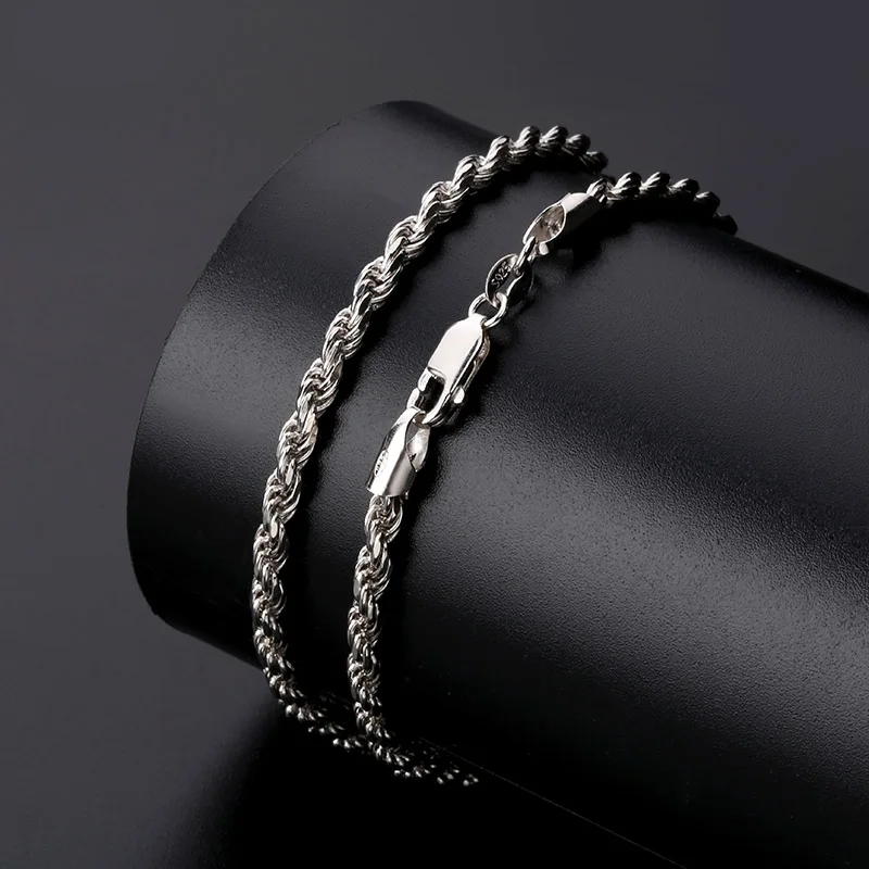 TOPGRILLZ High Quality 18 22 Inch 925 Sterling Silver 100% Rope Chain Necklace For Women Men Gold S